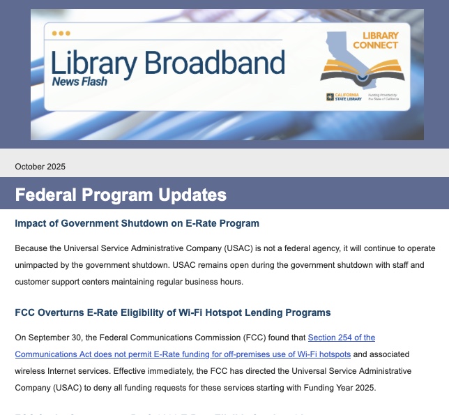 We offer information to our members on grants and funding discount opportunities to help libraries manage the costs associated with broadband connectivity.